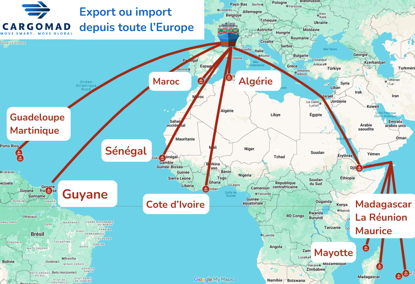 CARGOMAD organise vos flux maritimes import & export depuis toute l’Europe vers les DOM-TOM, l’Afrique, et l’Océan Indien.